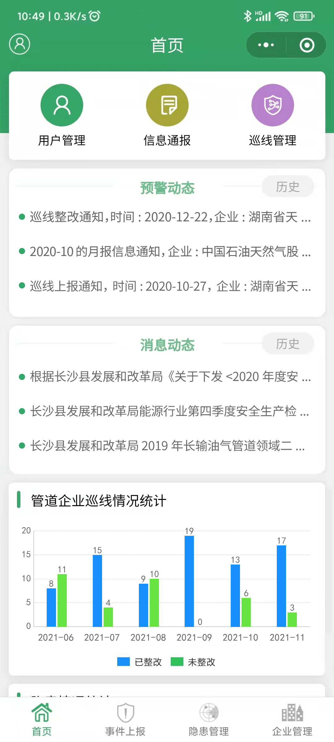 平臺配置了手機端小程序,安全監管人員、鎮街人員、管道企業人員皆可通過小程序隨時開展日常管理工作,快速增強工作便利性,持續提升安全工作的信息化水平。