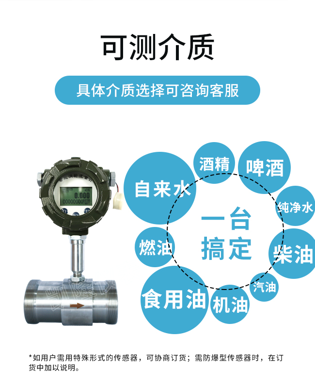 可測量介質(zhì):燃油、食用油、汽油、柴油、機油、潤滑油、液壓油、潤滑油、乙醇、酒精、白酒、啤酒等粘度不高的液體。