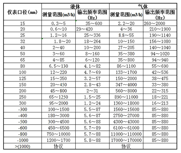 旋進(jìn)旋渦流量計(jì)流量范圍表