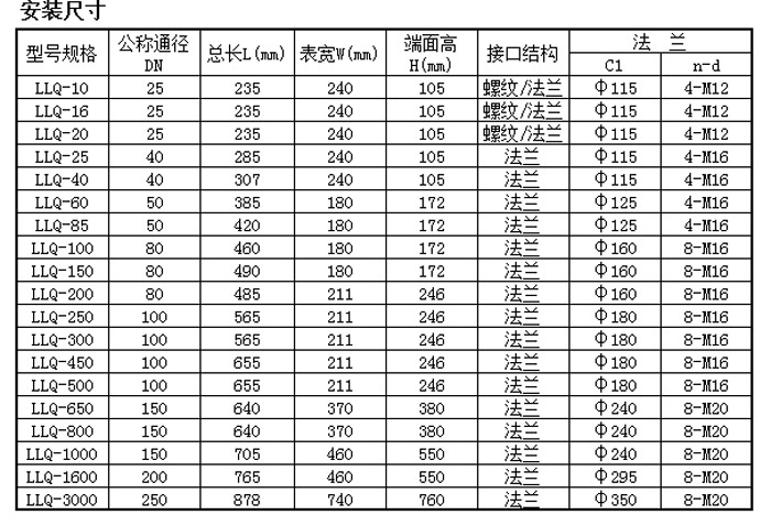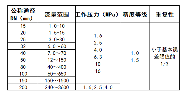氣體腰輪流量計(jì)流量范圍表
