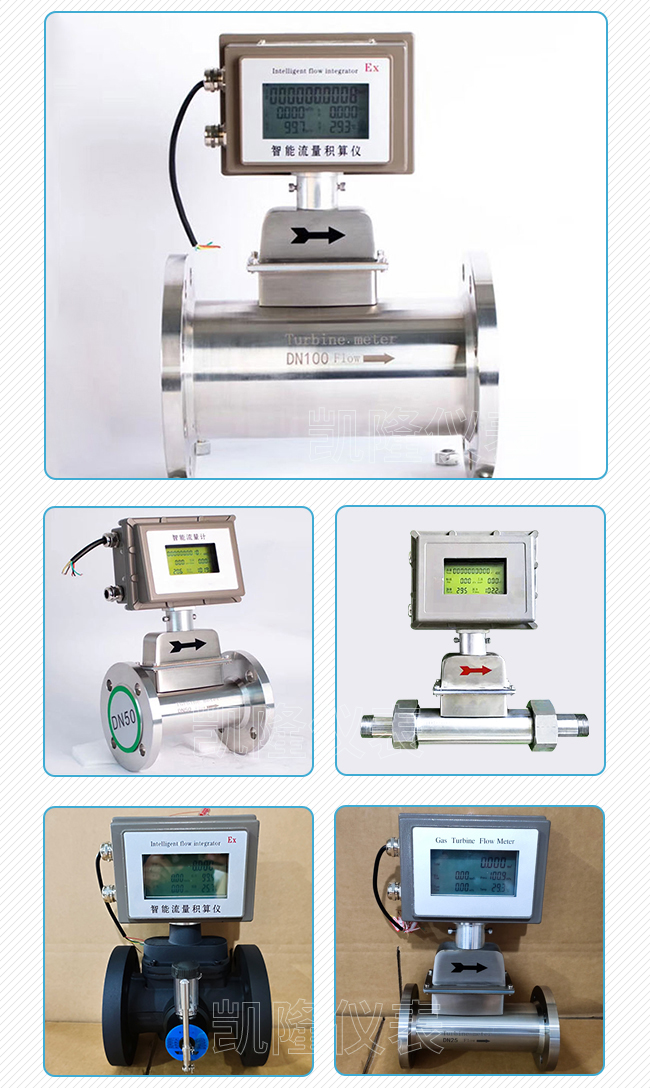 對于一些小口徑小流量的特殊工況來講我們這款小流量氣體渦輪流量計是非常適合的,始動流量為1m3/h,量程比可以達(dá)到1:20、1:30,精度等級可達(dá)到1.0級,小口徑可做到DN20甚至更小,安裝方式可選擇法蘭安裝、螺紋安裝、卡箍式等多種安裝方法。特別適用于各種小流量情況下氣體流量的測量。